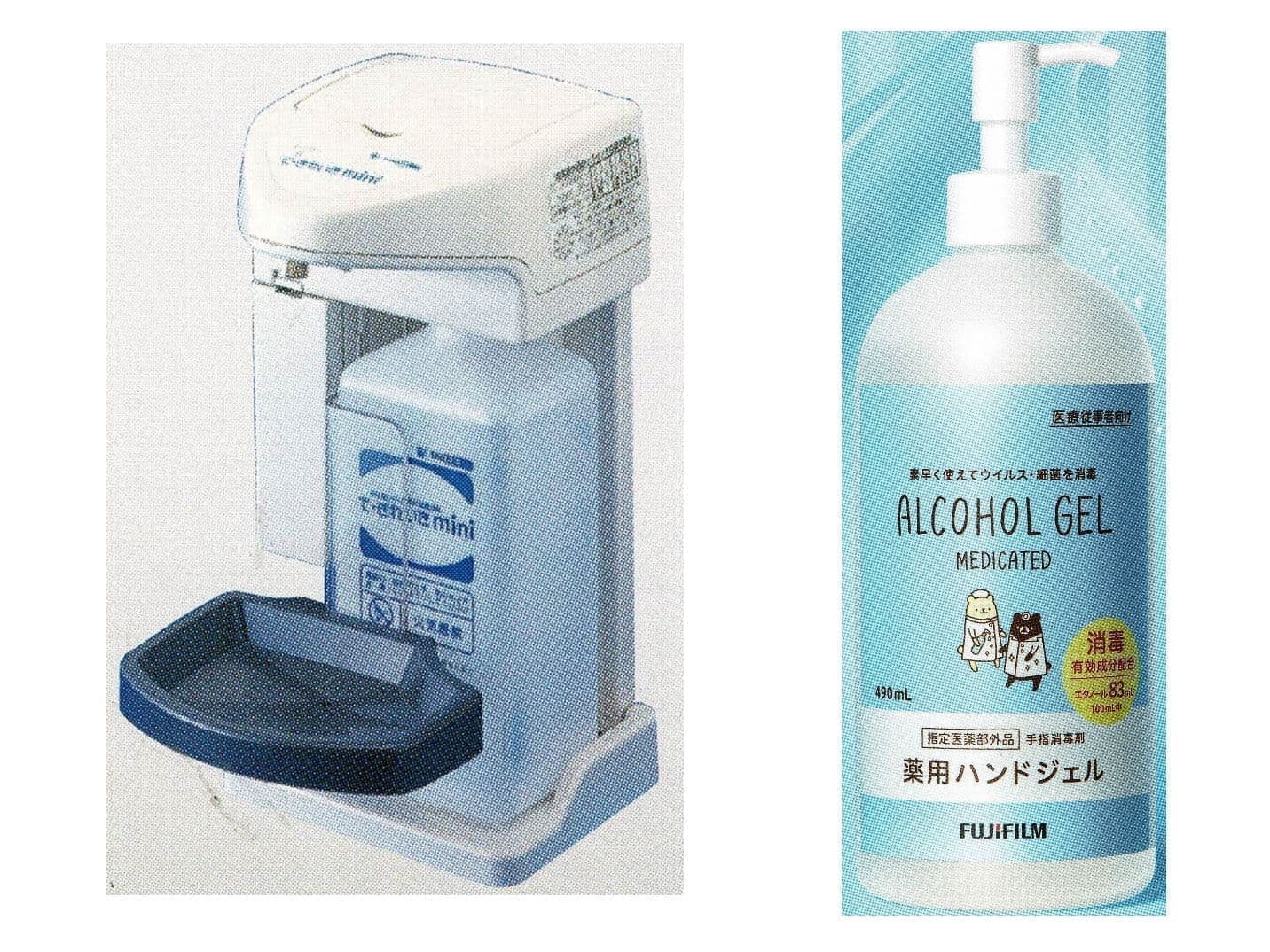 また、手を差し出すだけで容器に触れず消毒液を噴霧してくれる「てきれいき」等の噴霧器も取り扱っています。