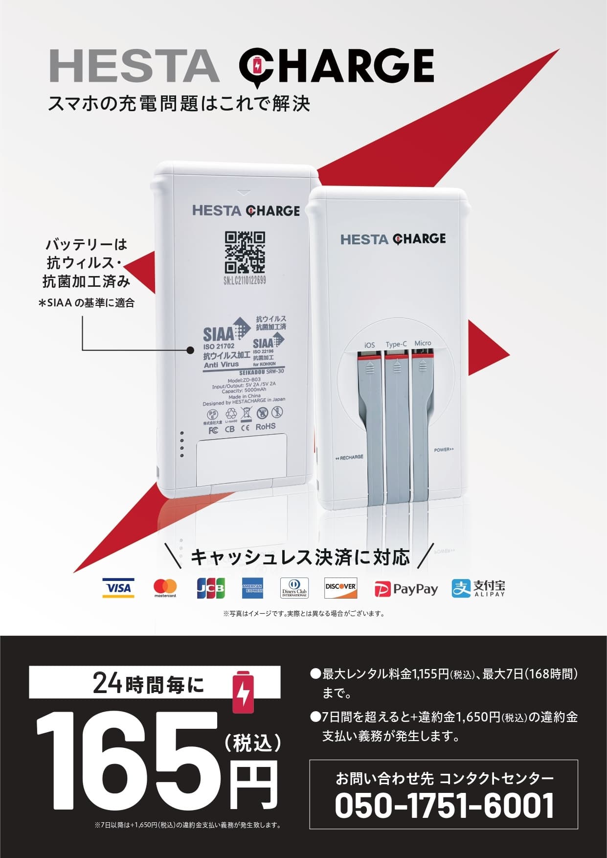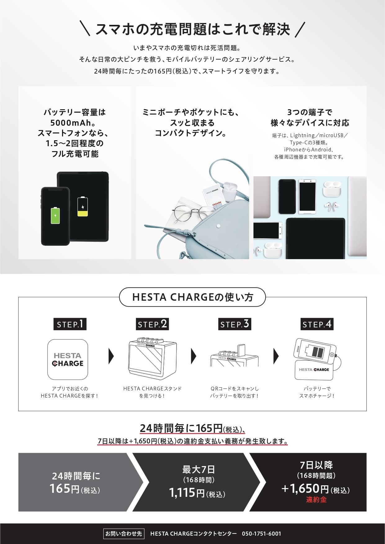 モバイルバッテリー シェアリングサービス「HESTA CHARGE」